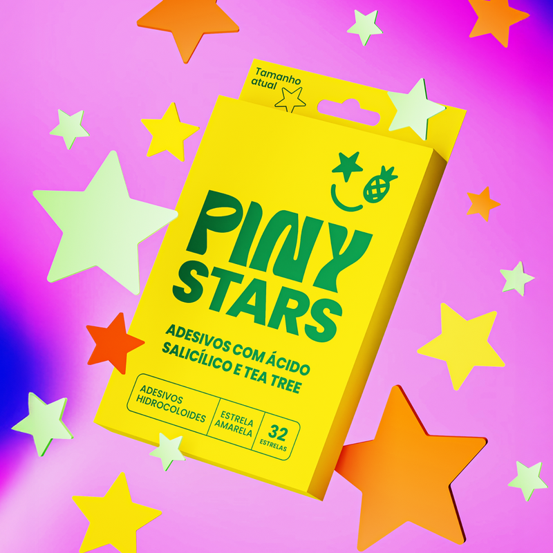 As Piny Stars são adesivos antiacne em formato de estrela que unem estilo e ciência. Enquanto você segue seu dia, o hidrocolóide cria uma barreira protetora, enquanto o ácido salicílico (2%) e o óleo de tea tree agem para reduzir a vermelhidão, purificar e manter os poros limpos.